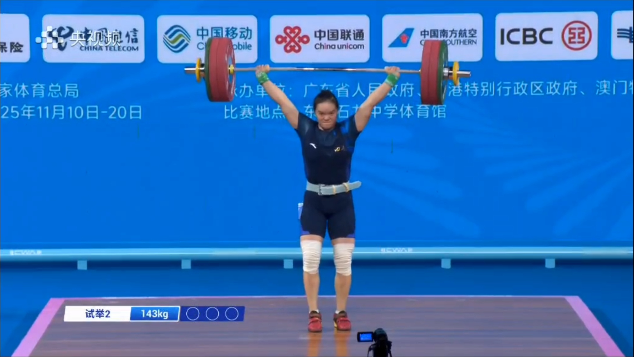 杨秋霞在抓举环节展现了教科书般的稳定性,三次试举全部成功,以120公斤的成绩位列首位,领先第二名福建选手何仁秀(118公斤)2公斤。这一表现虽未刷新她在2025年亚锦赛创造的122公斤抓举世界纪录,但已足够为夺冠奠定基础。挺举阶段,她首次试举140公斤即锁定胜局,随后冲击143公斤获得成功,可惜冲击146公斤时遗憾未能成功。但143公斤的挺举成绩仍使她以13公斤的优势领先银牌得主何仁秀(250公斤)。赛后,杨秋霞表示,未能突破挺举个人最好成绩(145公斤)是唯一遗憾,但整体发挥符合预期。