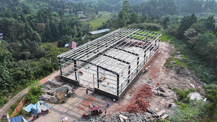 门坎镇大水湾村一座新建的竹制品加工厂正在紧张施工
