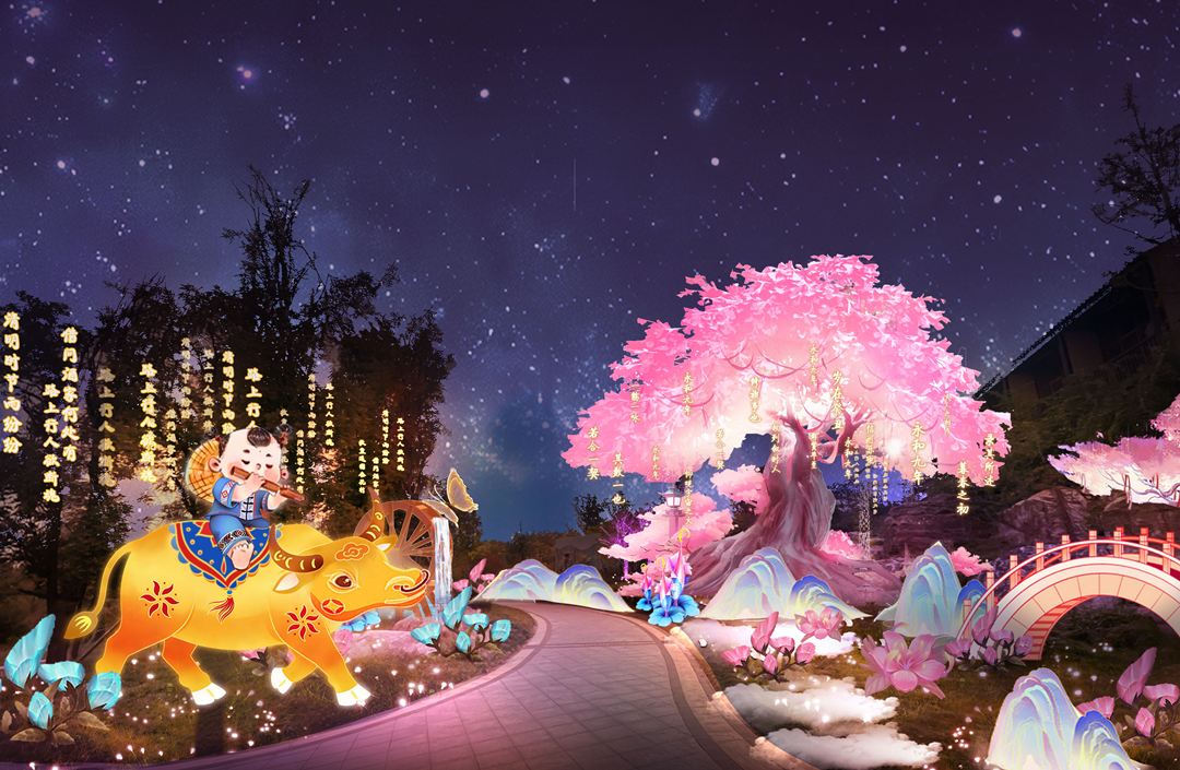 本届灯会注重“文化引领”,将呈现40余组彩灯,其中4组为12米及以上的超大型灯组,通过动态机械与声光电等技术应用,营造震撼人心的视听效果。在灯组设计上,巧妙挖掘表达历史文化与在地资源:有创意源自“五星出东方”蜀锦护膊的《神骏出东方》马年主题灯组,有反映蜀道文化的《五丁开蜀道》灯组,有创新表达三国文化的《人也,神也,仙也》灯组,有植根成都本地唐宋商业文明的《十二月市生肖闹》灯组,有刻画成都历史文化地标的《成都锦绣》灯组,有突显龙泉驿驿马文化、客家文化和桃花文化的《茶马远行织锦绣》《牧童遥指客家村》《人面桃花相映红》灯组,有用光影书写的诗词名句《千秋名句满庭院》《此心安处是吾乡》《缘来桃花笺》《稻花香里说丰年》灯组,精准、生动地展现深厚的中华历史文化底蕴。