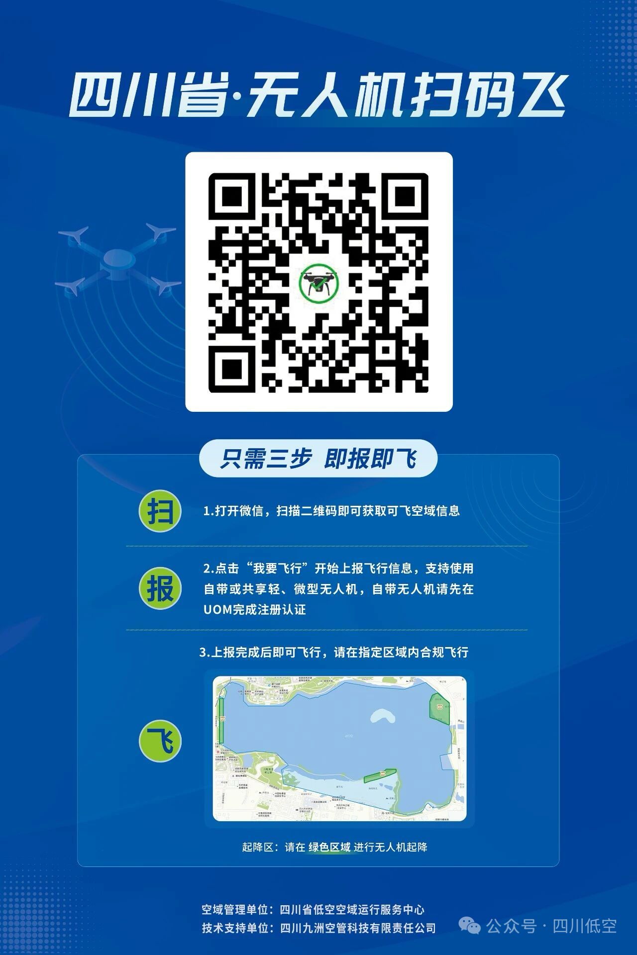 根据法律要求,使用“扫码飞”进行飞行前,用户须完成UOM系统实名认证。在管制空域试点区域内飞行必须通过小程序报备并遵守相关规定;在适飞空域也可使用,以便及时获取各类信息。一切飞行活动均须严格遵守国家法律法规,不得在禁飞区、未经批准的空域内操作,共同维护良好低空秩序。