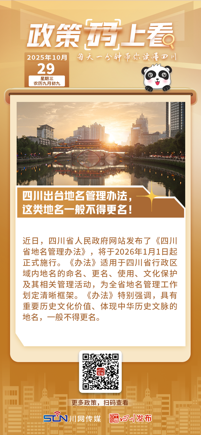 《办法》适用于四川省行政区域内地名的命名、更名、使用、文化保护及其相关管理活动,为全省地名管理工作划定清晰框架。