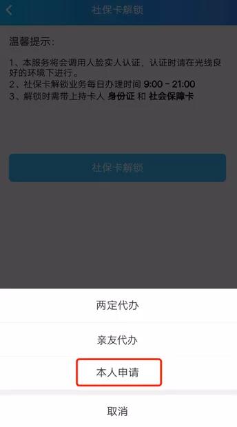1本人办理社保卡解锁业务时,选择“本人申请”,按照页面提示选择认证方式,支持人脸识别和电子社保卡认证两种方式进行本人认证。