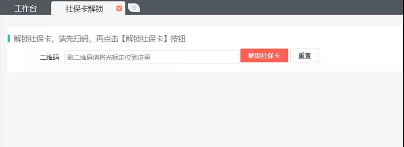 步骤3、 两定机构的经办人员在定点医药系统内操作“社保卡解锁”功能。插入需要解锁的社保卡后,经办人员先扫描手机端生成的解锁二维码,再点击“解锁社保卡”按钮:
