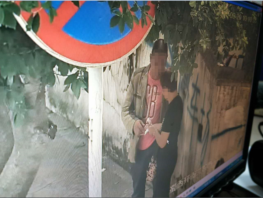 在警方提供的视频中显示,内穿淡红色短袖、外穿棕色外套的李某接过身穿黑色短袖汪某的钱后,经过现场点认,脸上笑开了花。当两人交易完毕后,3名便衣民警一拥而上,将两人现场挡获。