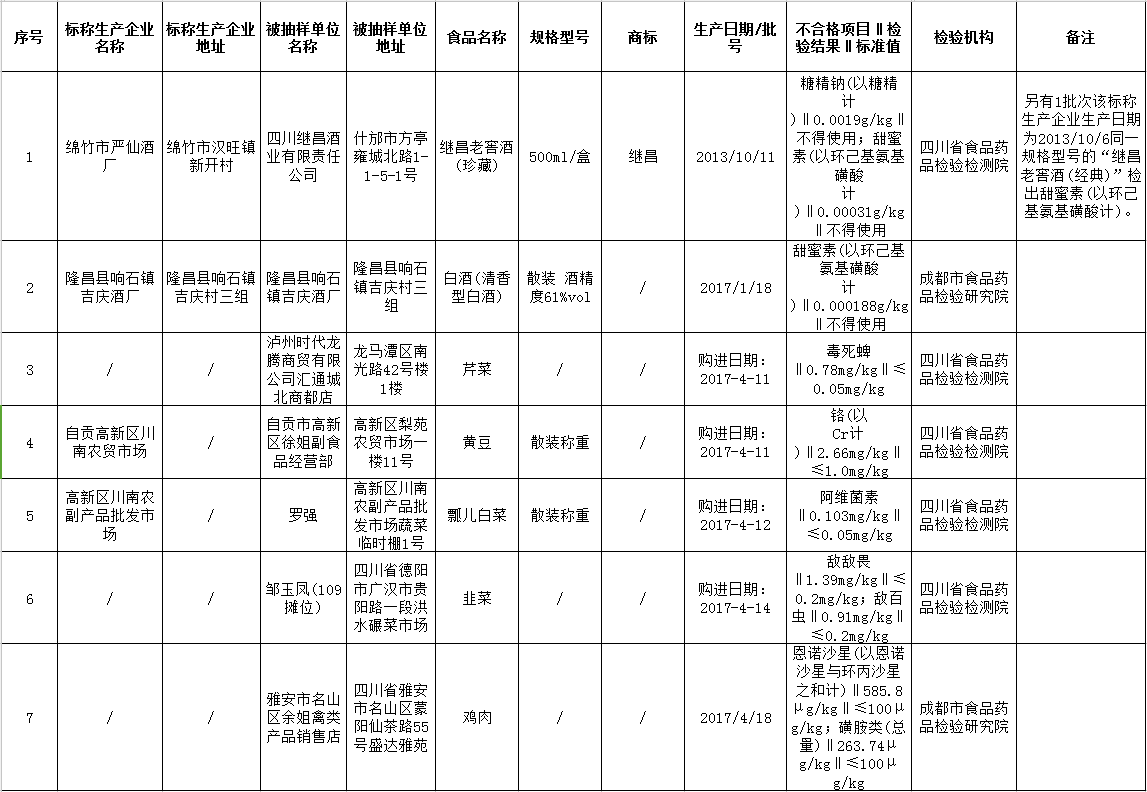 四川发布客户端消息 9月21日,四川省食品药品监督管理局公布最新一期抽检结果,在近期组织对281批次酒类、食用农产品的抽检中,发现不合格样品8批次。