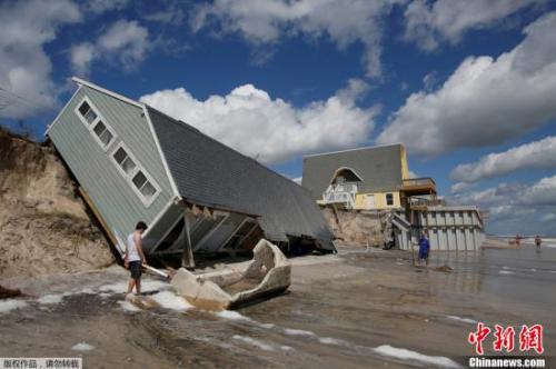 资料图:当地时间9月12日,美国佛罗里达州遭遇飓风,房屋被大风吹倒。