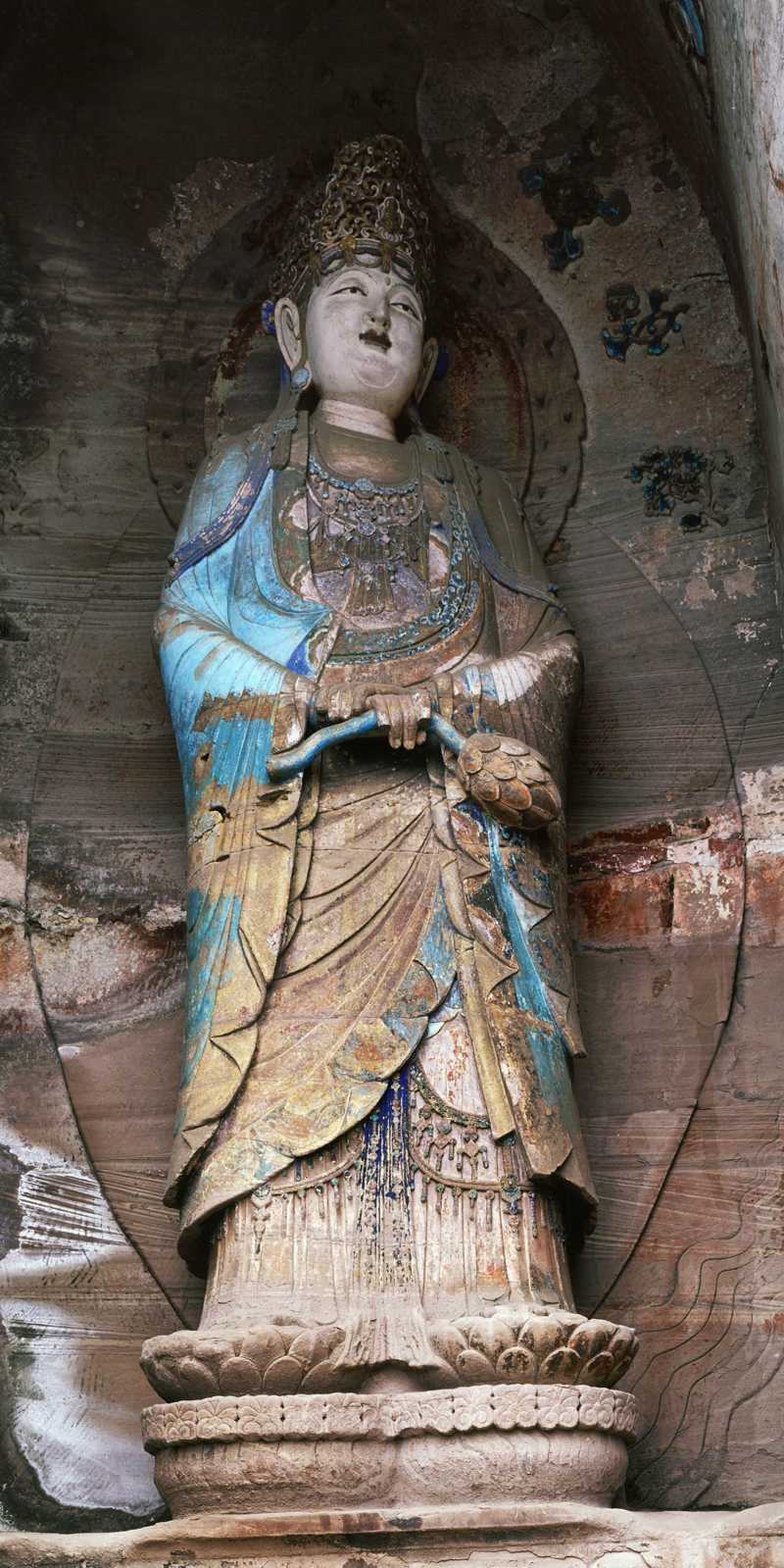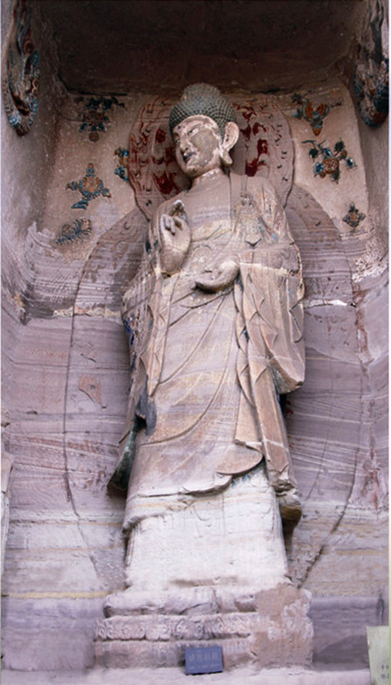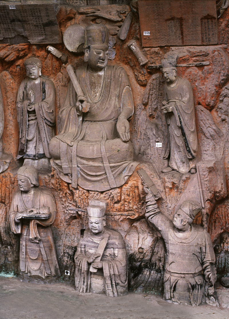 圆觉洞摩崖造像题材主要以禅宗为主,次为密宗和释道同龛像。石刻造像,端庄丰满,气质浑厚,薄衣贴体,裙带飞扬,大有“曹衣出水”、“吴带当风”的神韵。