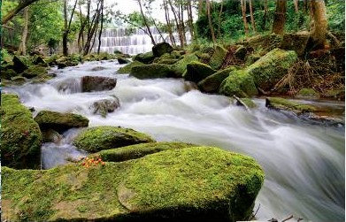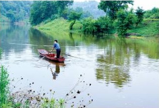 从保和镇两河口到老君镇双河桥,是花溪河下游地区,这一段河面宽阔,河水平静,两岸绿树成荫,翠竹掩映,清澈的溪水倒映着两岸,形成“山在水中,舟在山上”的奇特景观,从保和镇钓鱼村踏水桥经和平桥到中和镇罗家村三河口,这一段景色是花溪的精华,青山绿水用在这里一点也不夸张。