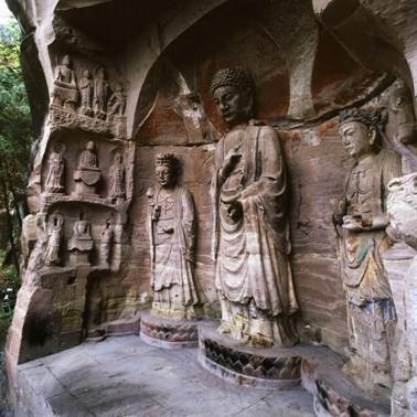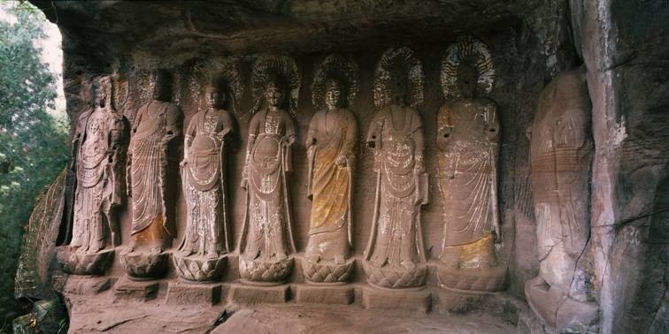 据明代万历年间碑文追述,毗卢洞的石刻造像开创于五代后蜀,之后历代都进行过培修、补刻。这里曾经是五代至北宋年间四川佛教密宗的主要道场之一。尤其是观音堂内雕刻的那尊“水月观音”,群众称她“紫竹观音”,英籍华人作家韩素英把她誉为“东方维纳斯”,是全国少有的北宋石刻艺术珍品。