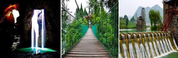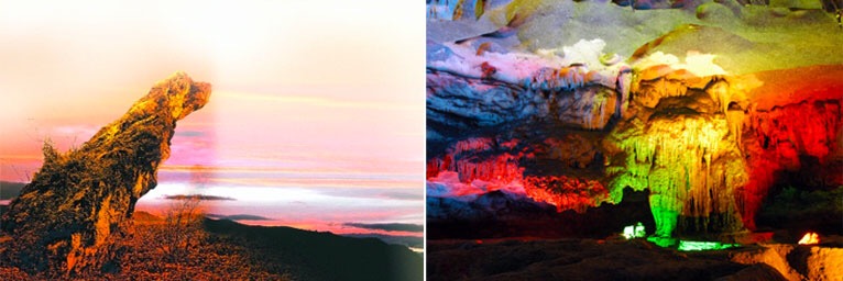 洞顶悬吊形状各异的钟乳石,欲坠未坠;顶壁滴水如细雨霏霏,水雾迷蒙;洞中高达500余米的“通天洞”,逐级盘旋而上可达山顶。如果你未曾亲自走进洞中看看,也许就与这扣人心弦的景色擦肩而过。