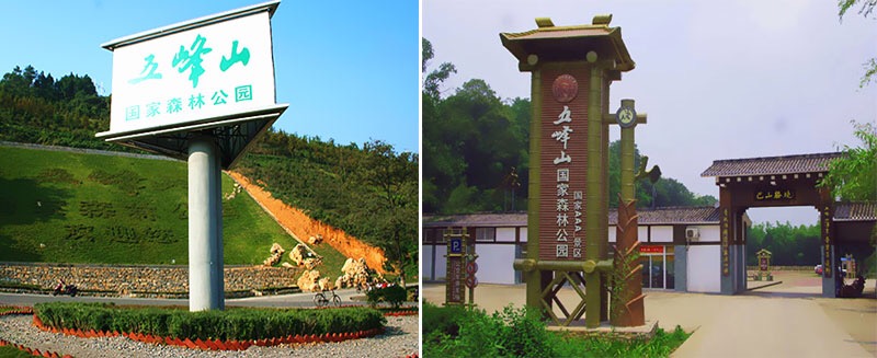 五峰山,因来此朝拜太阳的五只凤凰贪恋美景不愿离去,化作五座山峰而得名;因竹林面积400公顷,约占景区总体面积一半,故又俗称竹海公园。该公园坐落于大竹县铜锣山脉中段,是国家天然白夹竹最集中、面积最大的景区,为国家AAAA级旅游景区、国家森林公园、省低碳生态旅游示范单位。