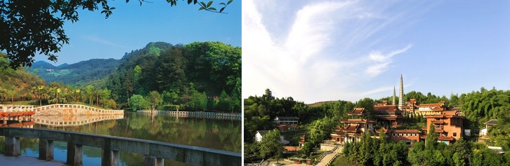 天象景观:包括日出日落,云雾雨雪等景观。淡云薄雾,缥缈虚幻,宛若仙境,春有雨中听笋,冬有银装素裹,四时之景不同。
