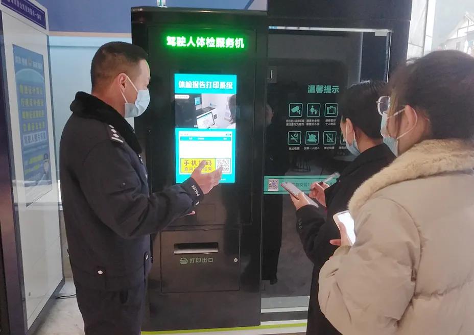 8日上午10时许,在该警务站内,市民李栋正在办理驾照更换业务,李栋走进车驾管业务自助服务一体机后,拉起门帘,然后按照显示器上的提示按键操作,通过视频拍摄的方式,进行左转头、右转头、抬起双臂……还有视力检测、下肢检测的一系列自助体检,约等候3分钟就可以马上拿到体检表。“确实很方便,不用去医院了,减少了来回跑,也少了办理时间。”李栋说,自己办理完成了驾照到期更换业务,只花了10分钟。