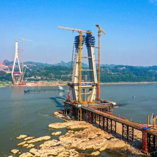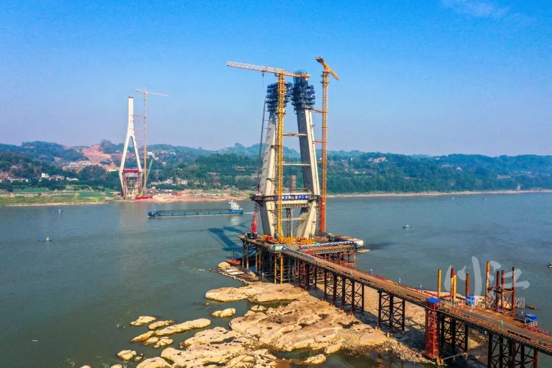 根据设计,泸州榕山长江大桥总长1505米,其中主桥1055米,主跨530米,是长江四川段最大跨径双塔双索面叠合梁斜拉桥。其中,两个主墩分列长江两岸,1号墩主塔高162米,2号墩主塔高204米。