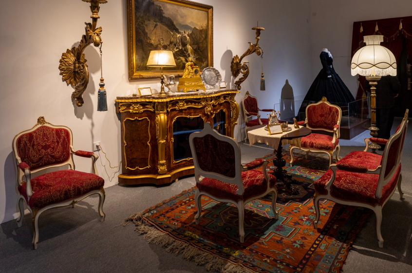 活动主办方相关负责人介绍,观众对茜茜公主的印象多源于1955年奥地利电影《茜茜公主》,大家对茜茜完美无瑕的外表、优雅高贵的着装打扮、以及宫廷范儿的举手投足心怀向往,充满好奇。本次展览中所呈现的家具、服饰、器皿,正是源出与复刻茜茜身处的匈牙利格德勒王宫与奥地利美泉宫,真实还原了茜茜的生活画面,折射出十九世纪欧洲王室与贵族阶层的审美趣味。