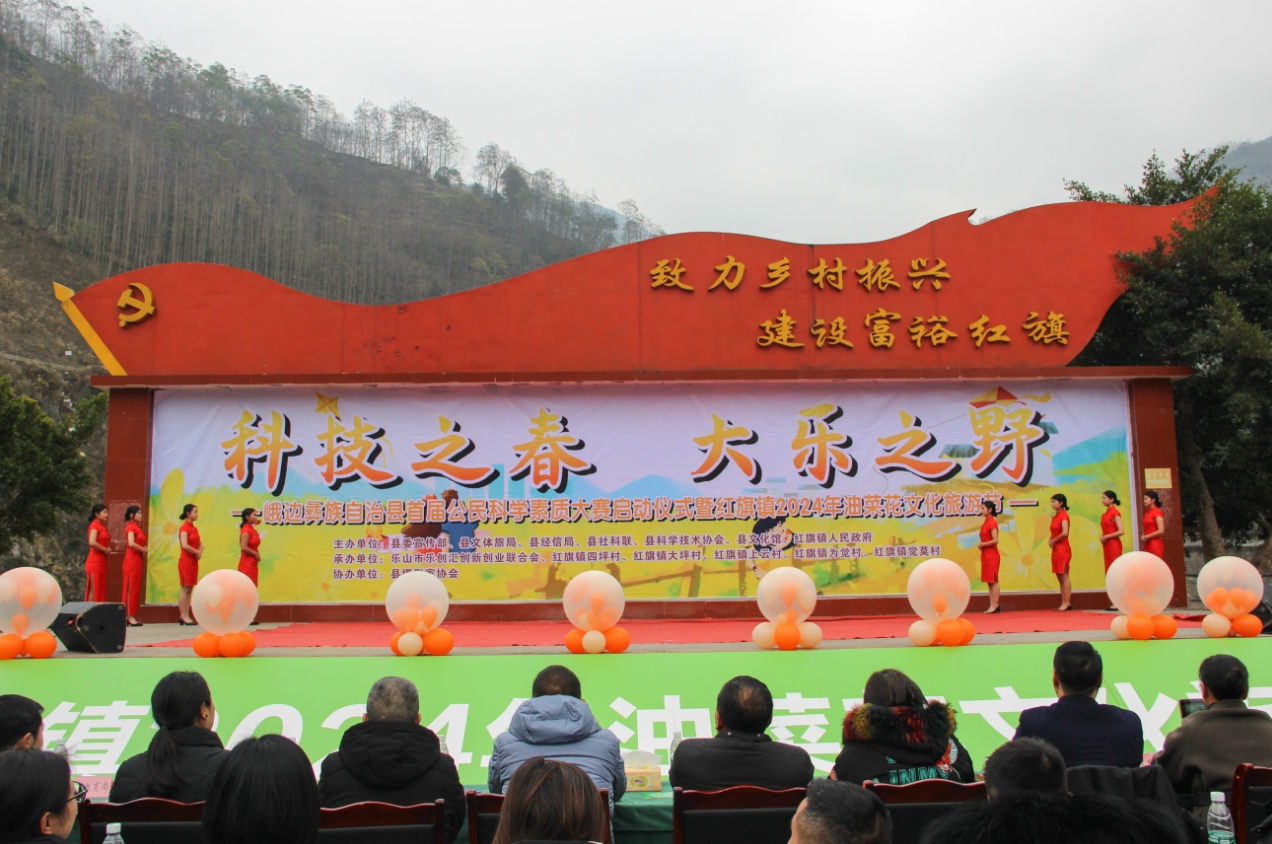 四川发布客户端消息 3月6日,春风和气,乐山市峨边彝族自治县首届公民科学素质大赛暨红旗镇2024年油菜花文化旅游节在红旗镇四坪村文化广场拉开了帷幕。