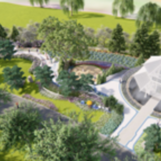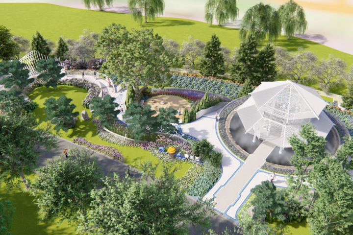 青岛园位于中华园艺展区(北区),总面积1500平方米,地块整体呈不规则梯形,场地整体较为扁长,建筑造型选用成都拼音首字母”C”,以及青岛拼音首字母“Q”,通过“微笑曲线”,牵手两座城市,体现两座城市友好往来。