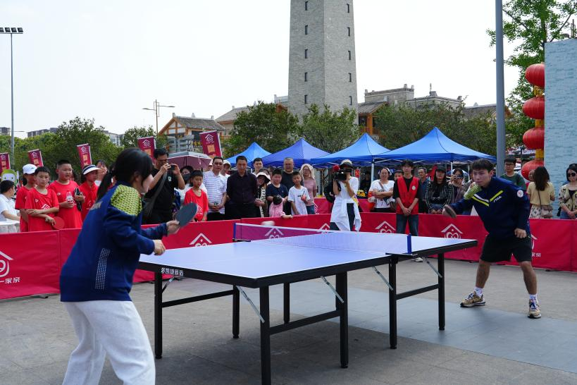 接下来是“同运动·一家亲”活动的传统节目──四川体育职业学院的李宜峰教练带领两位四川省乒乓球队运动员何忠贵和冷雨桐给现场观众带来精彩的乒乓球表演赛。近距离的观看如此高水平的比赛,现场观众大呼过瘾,欢呼声、掌声此起彼伏。