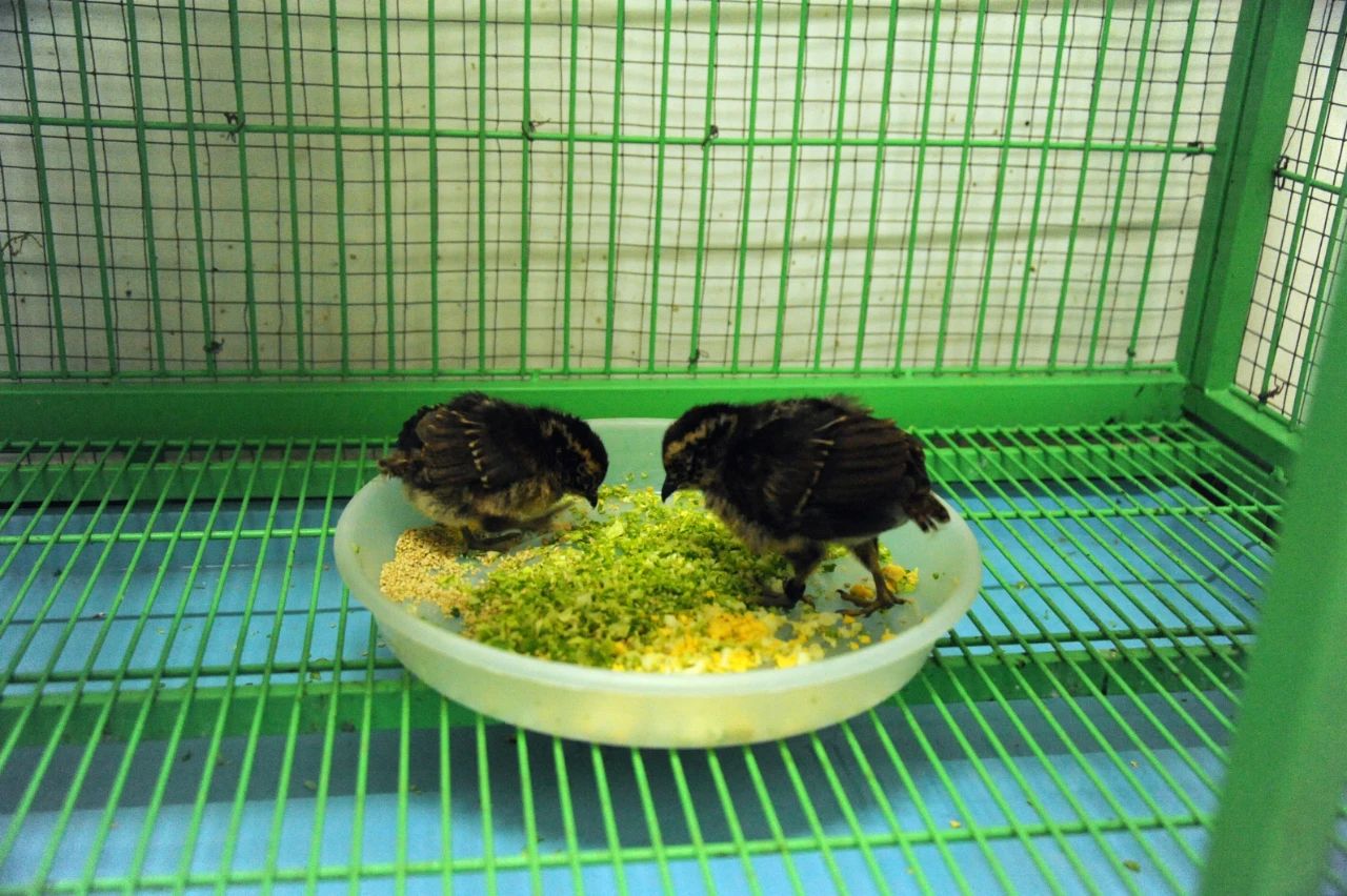 将调配有蔬菜、配方饲料、营养品的盘子放进育雏笼,两只比雏鸡稍大的小家伙扑腾着翅膀上前啄食,不时发出“叽叽叽”的叫声。工作人员在一旁静静观察,记录下它们出生后第15天的成长情况,同时写下时间:2024年6月13日上午9点。