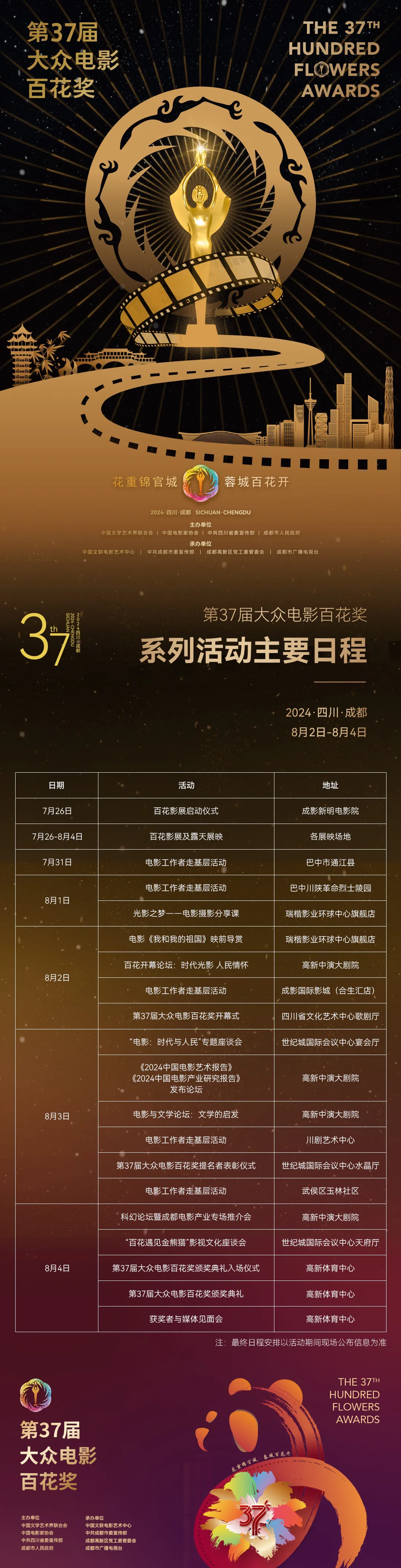 第37届大众电影百花奖系列活动主要日程发布