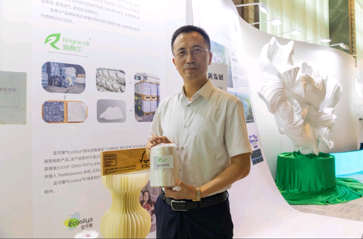第四,研发以回收浆为原料的宜赛尔等循环再利用纤维素纤维。该系列产品具有循环再生、生物降解、碳足迹低、舒适透气、柔软吸湿等特点。