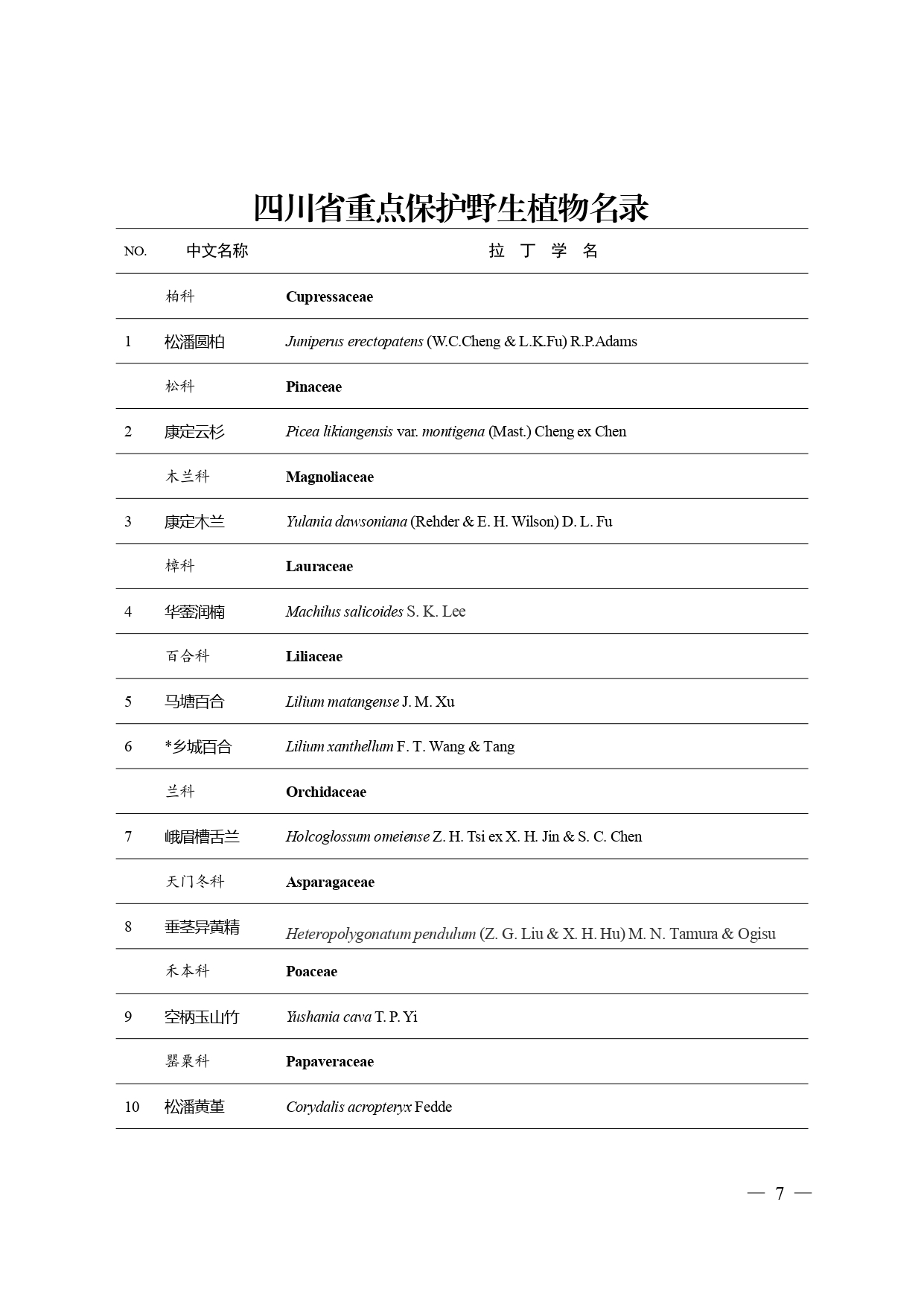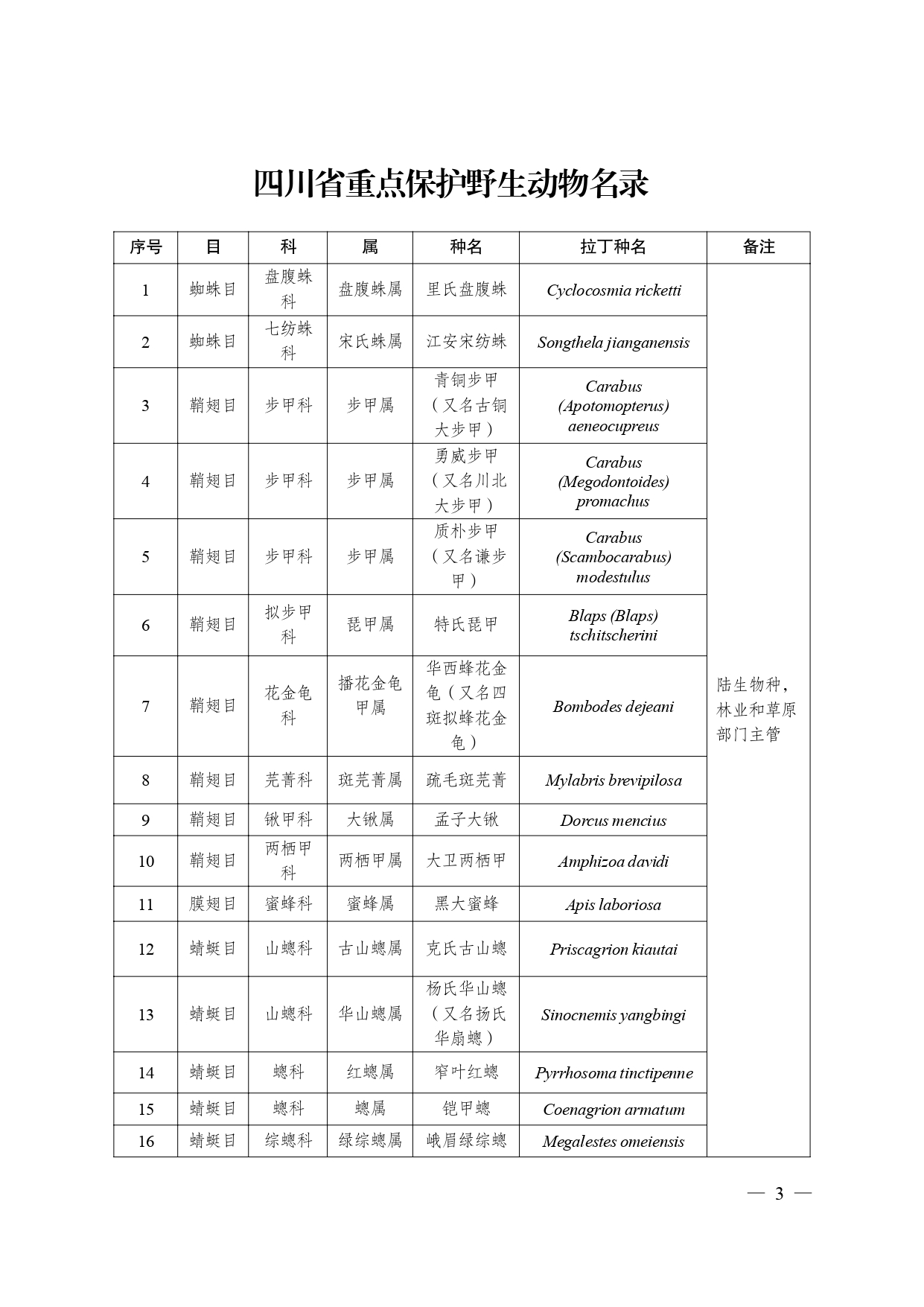 记者从四川省人民政府网站获悉,根据相关规定,近日,四川省人民政府将调整后的《四川省重点保护野生动物名录》《四川省重点保护野生植物名录》予以公布。具体如下: