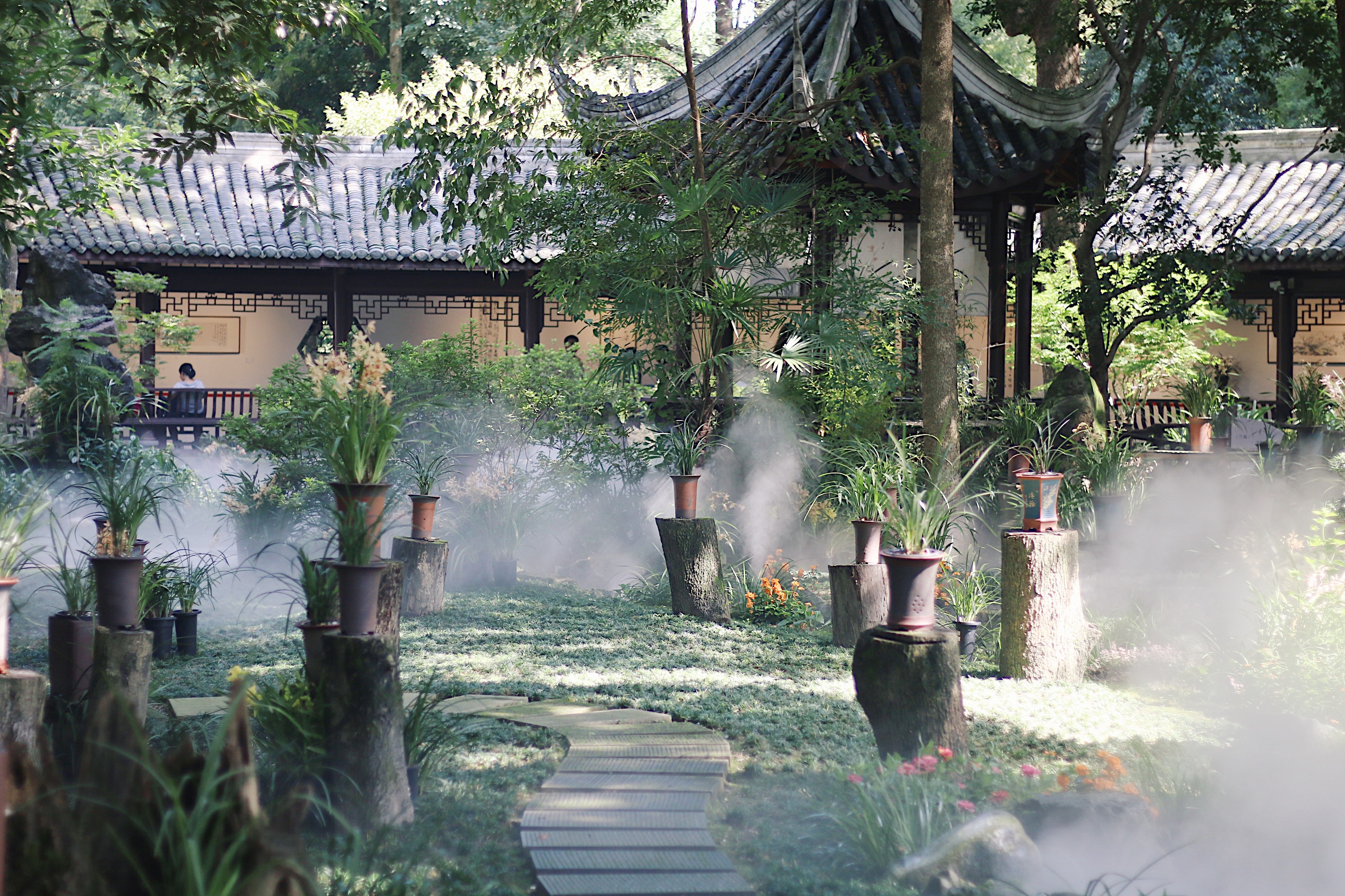 值得一提的是,8月13日上午,草堂浣花园林区的观鹭轩内还设置了兰花集市(彭州丽春镇专场),集市内以展销丽春兰花为主,同时间配有彭州白瓷、彭州梨膏等彭州特色产品展销。集市以“兰花”文化为魂,融入乡村产业,为助力乡村振兴提供了新的展示形式。