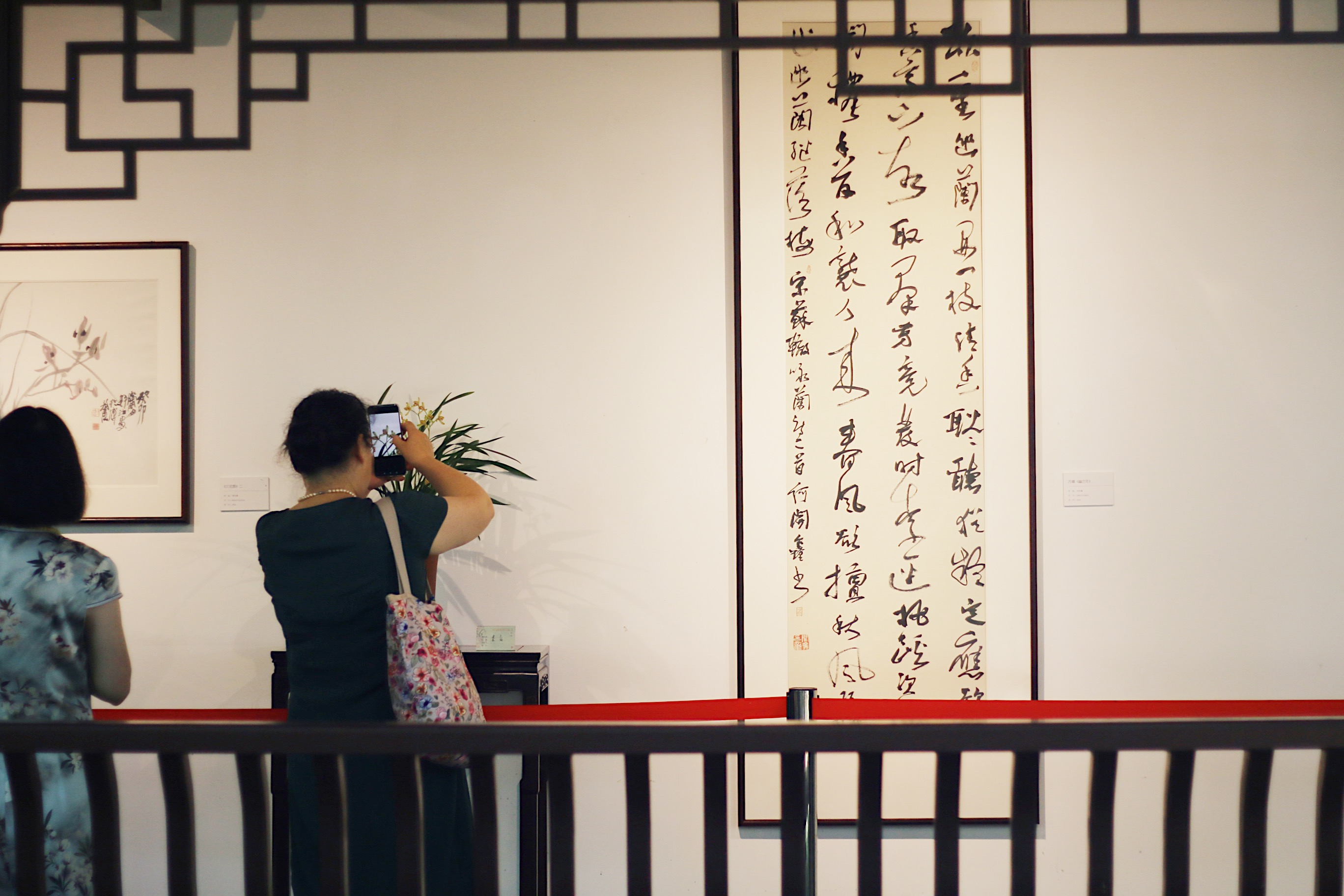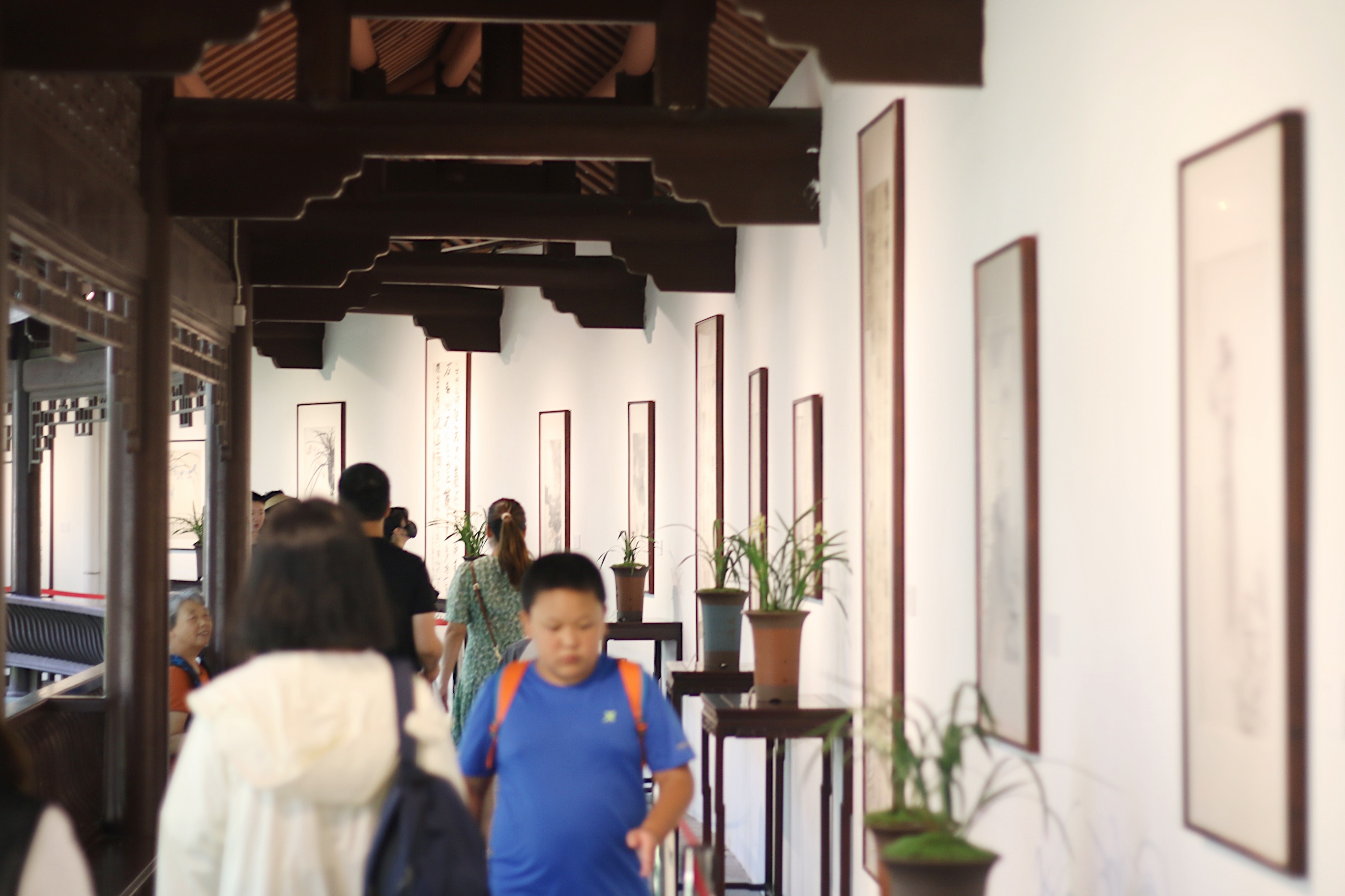 除了可以赏兰之外,兰园还设有兰花主题书画艺术展区,集中呈现了19位四川当代著名书画家以“兰”为主题创作的26件书法绘画作品。“我第一次来杜甫草堂就赶上了兰花展,感觉非常兴奋。兰花是一种高洁的植物,它非常受文人墨客的喜爱,兰花展里展示了很多著名画家画的兰花,非常美丽。”来自上海的游客小朋友说道。