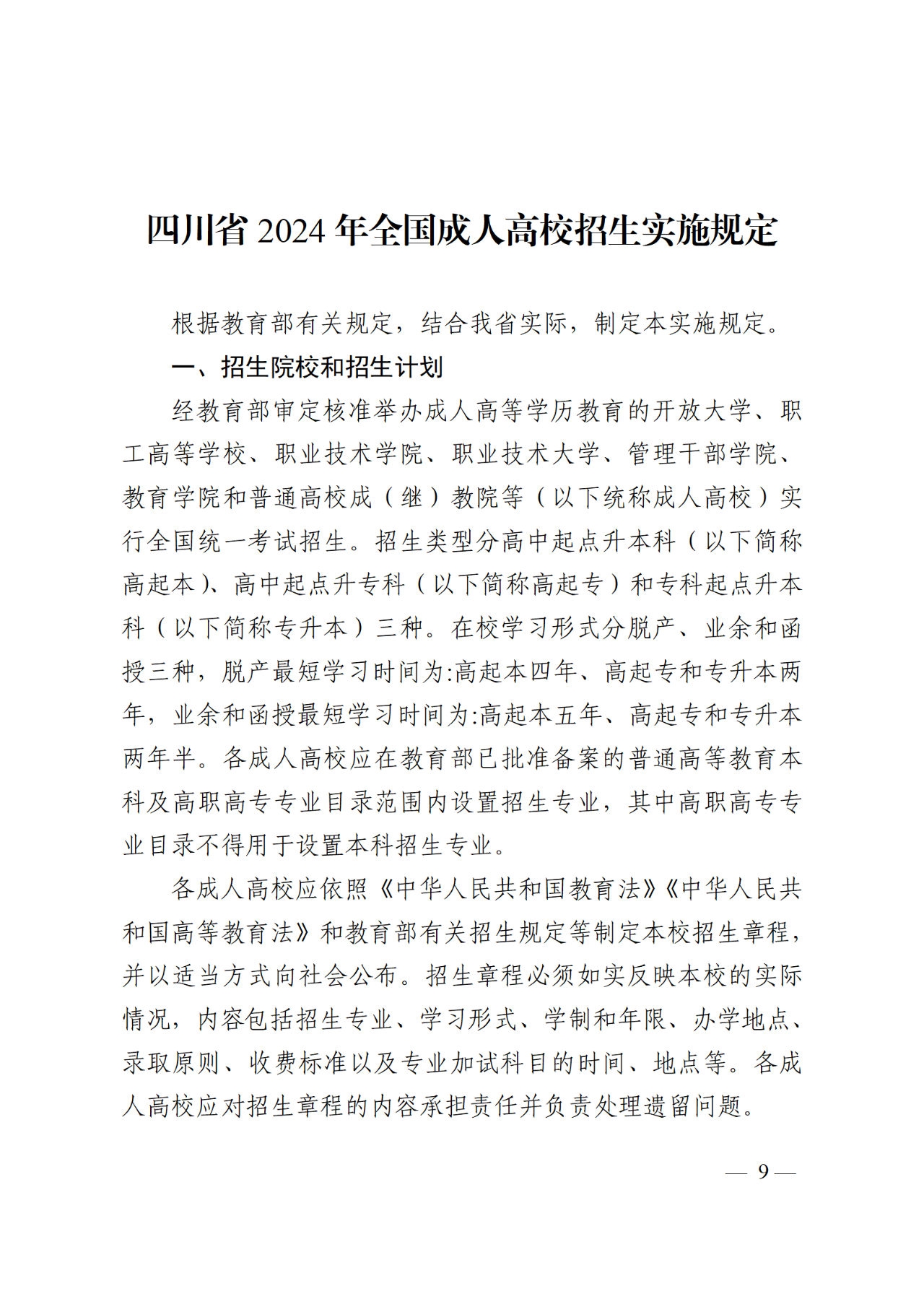 四川省2024年全国成人高校招生实施规定发布