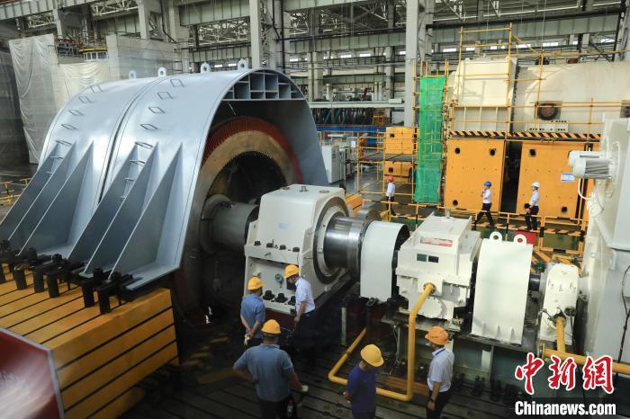 8月16日,四川德阳,300MW级变速抽蓄发电电动机1:1转子飞逸试验。记者 王磊 摄