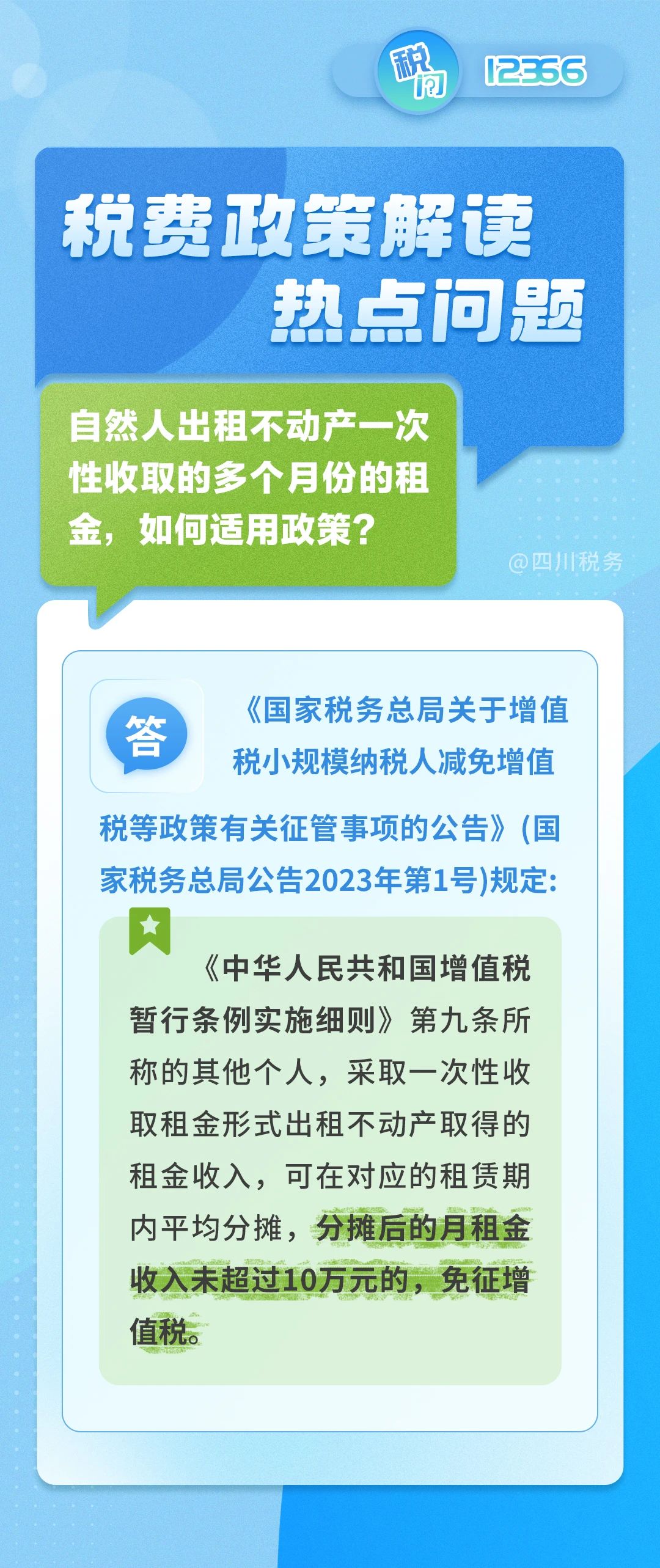 自然人出租不动产一次性收取的多个月份租金,如何适用税收优惠政策?