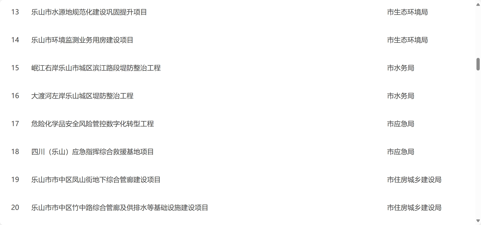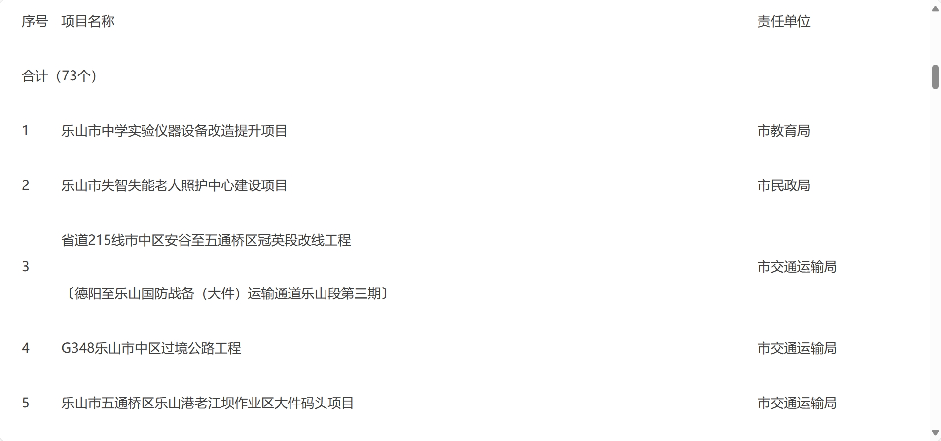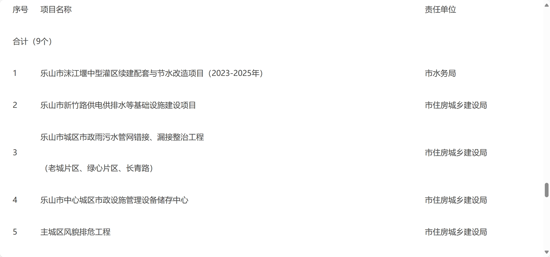 乐山市2024年度市本级政府投资计划表