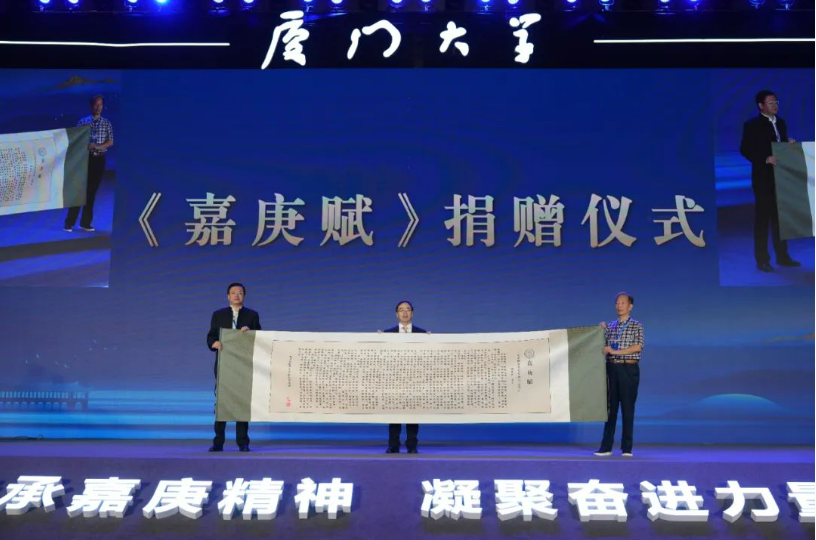 四川发布客户端消息 9月21日,第九届厦门大学全球校友会会长秘书长暨校友代表大会在成都举行。会上,四川省厦门大学校友会、川籍校友何开四携手向母校捐赠《嘉庚赋》,纪念厦门大学缔造者、厦大人心中的“校主”陈嘉庚先生诞辰150周年,礼赞陈嘉庚先生倾资兴学、爱国为民的光辉事迹和崇高精神。