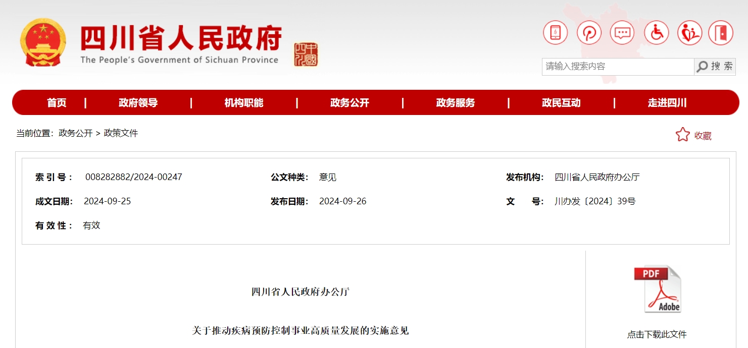 四川发布客户端消息 记者从四川省人民政府网站获悉,为加快推动全省疾病预防控制事业高质量发展,推进健康四川建设,近日,省政府办公厅印发《关于推动疾病预防控制事业高质量发展的实施意见》(以下简称《实施意见》)。