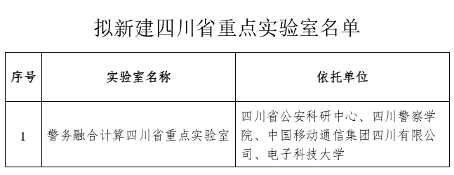 四川发布客户端消息 记者从四川省科学技术厅网站获悉,10月8日,四川省科学技术厅发布《关于拟新建四川省重点实验室的公示》,公示时间为2024年10月8日至2024年10月12日。