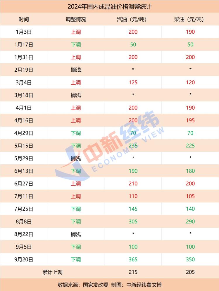 今年以来,国内油价已经历十九轮调整,累计“七涨八跌四搁浅”。涨跌互抵后,国内汽、柴油价格每吨分别下跌215元、205元。若本轮调价落地,年内成品油调价将呈现“八涨八跌四搁浅”格局。