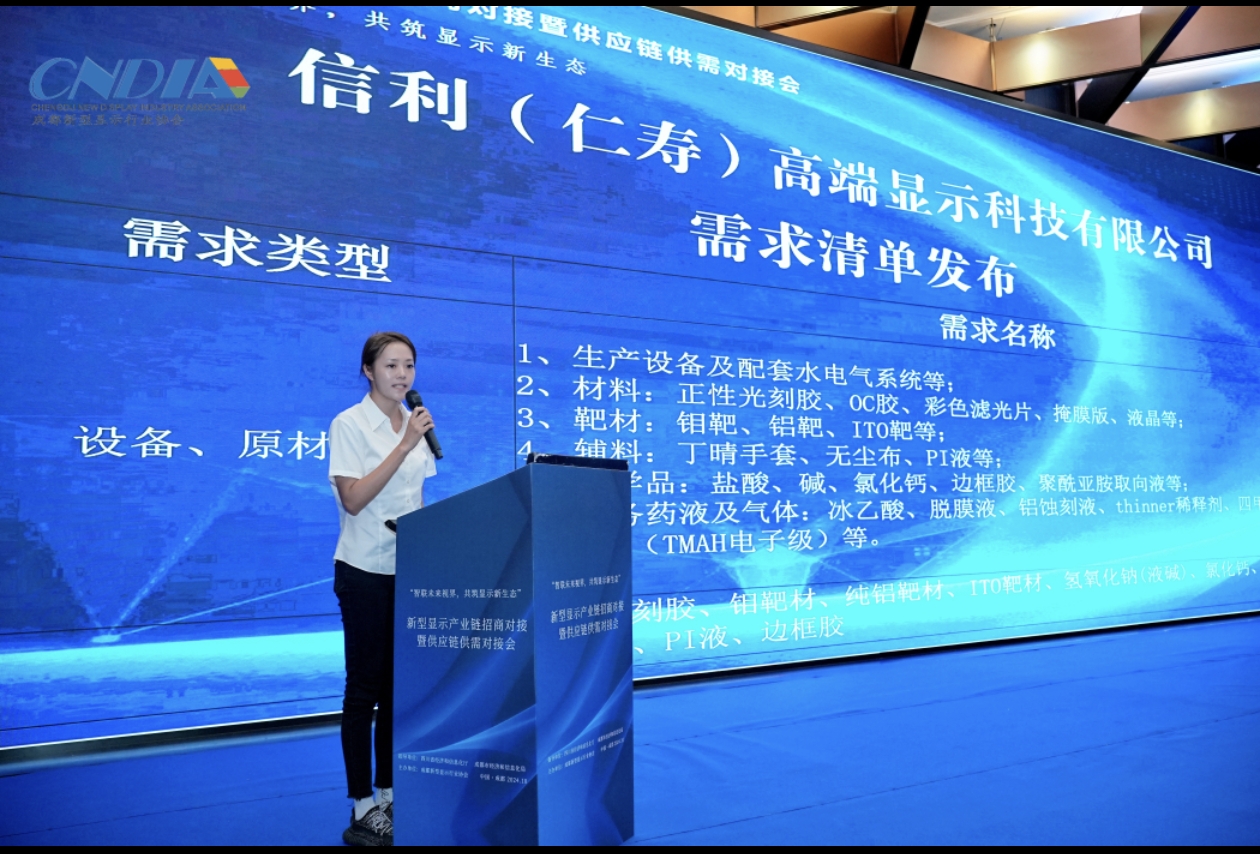 四川发布客户端消息 10月10日,以“智联未来视界,共筑显示新生态”为主题的成都新型显示产业链招商对接暨供应链供需对接会举行。本次活动旨在搭建一个高效、开放、共赢的交流合作平台,促进新型显示产业链上下游企业之间的深度沟通与精准对接,引进先进的配套企业。现场,新型显示企业发布了需求清单、产业链相关精品产品,深圳鼎晶科技、杭州远方光电、南京新创力光电等6家新型显示产业配套企业签约落地成都。此外,8家成都新型显示企业分别与14家企业完成产业供应链供需签约,签约金额超6000万元。