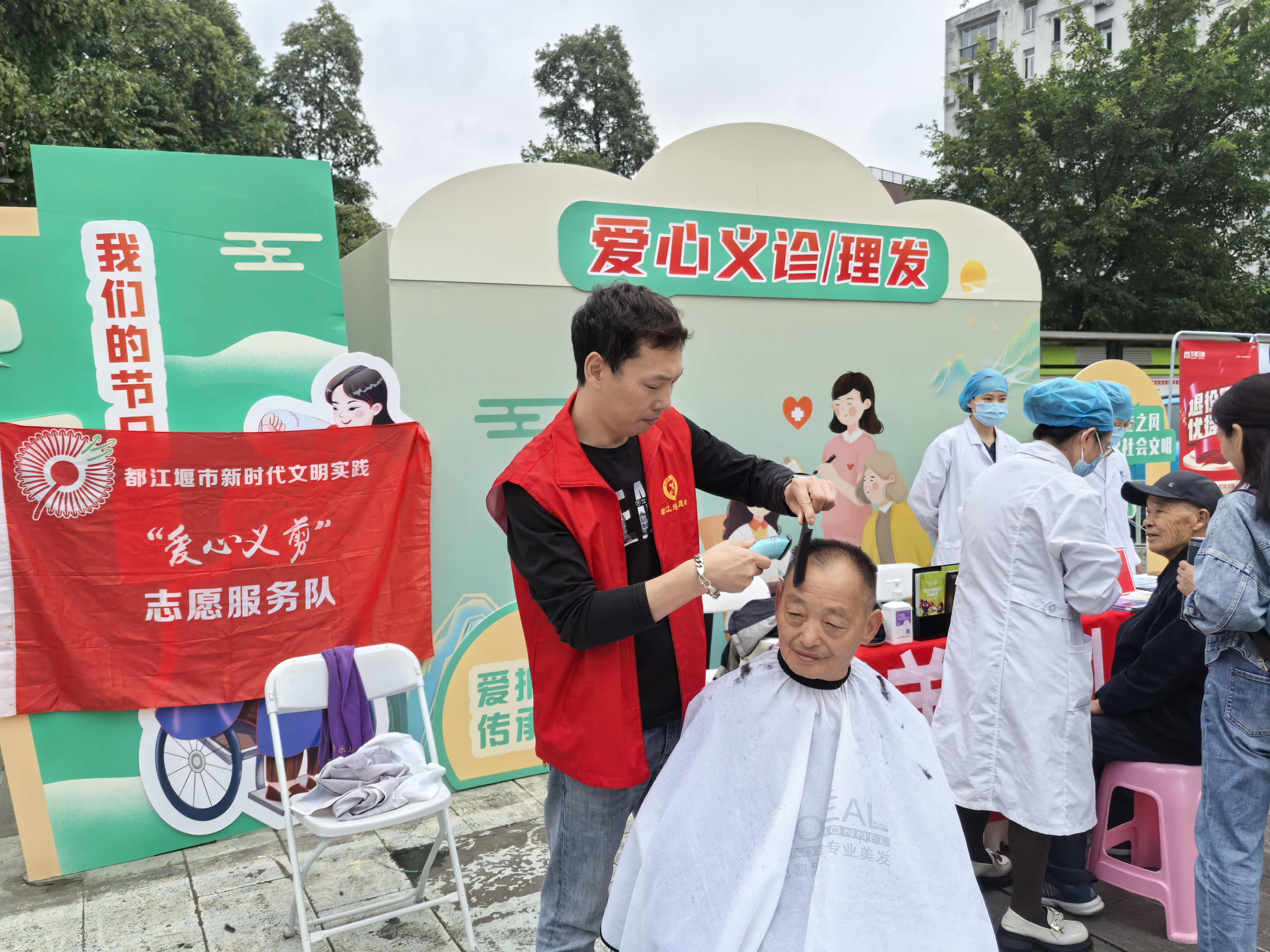 此外,爱心义诊、爱心理发等志愿服务项目也为现场老人们提供了实实在在的帮助和便利。