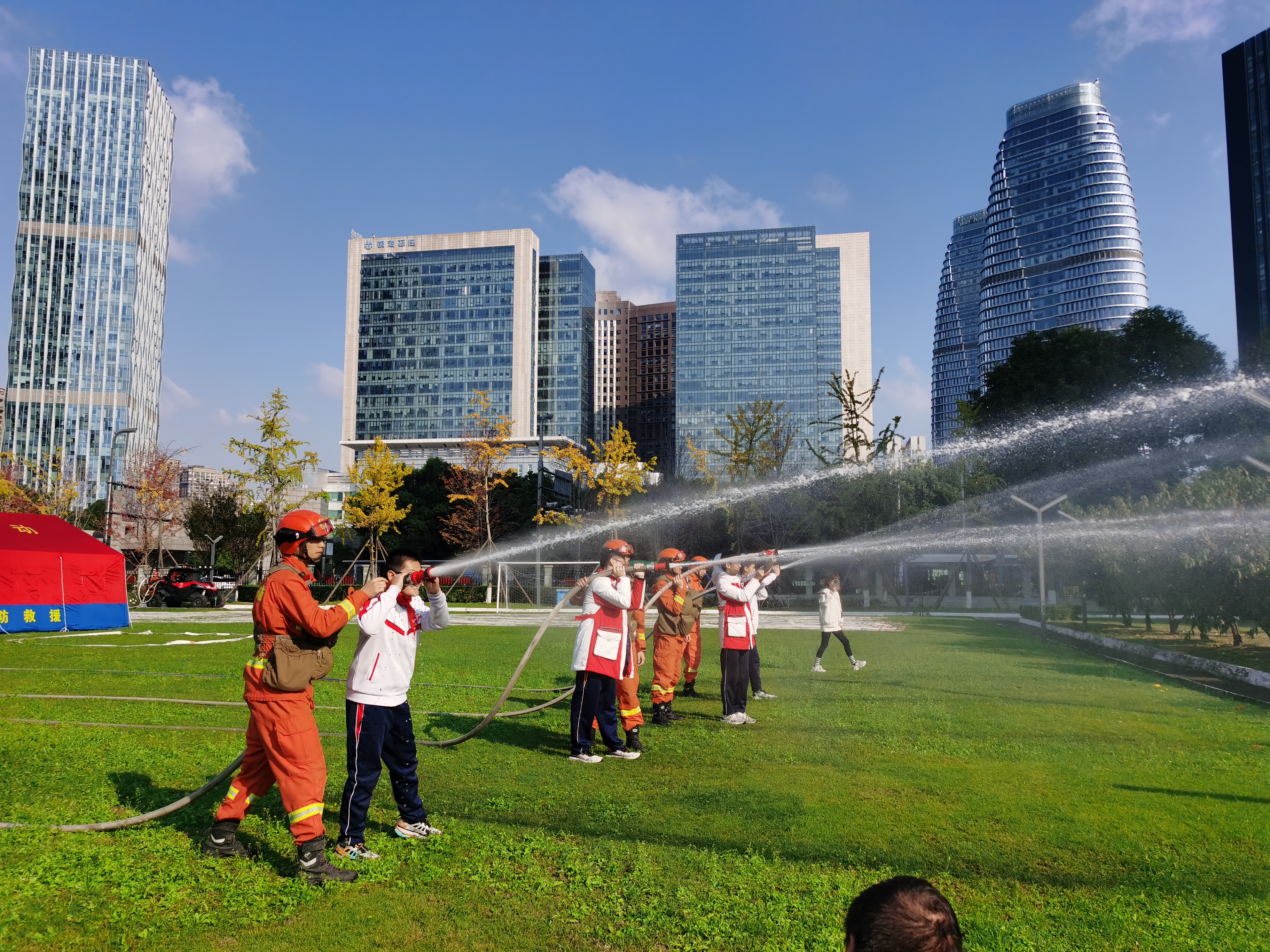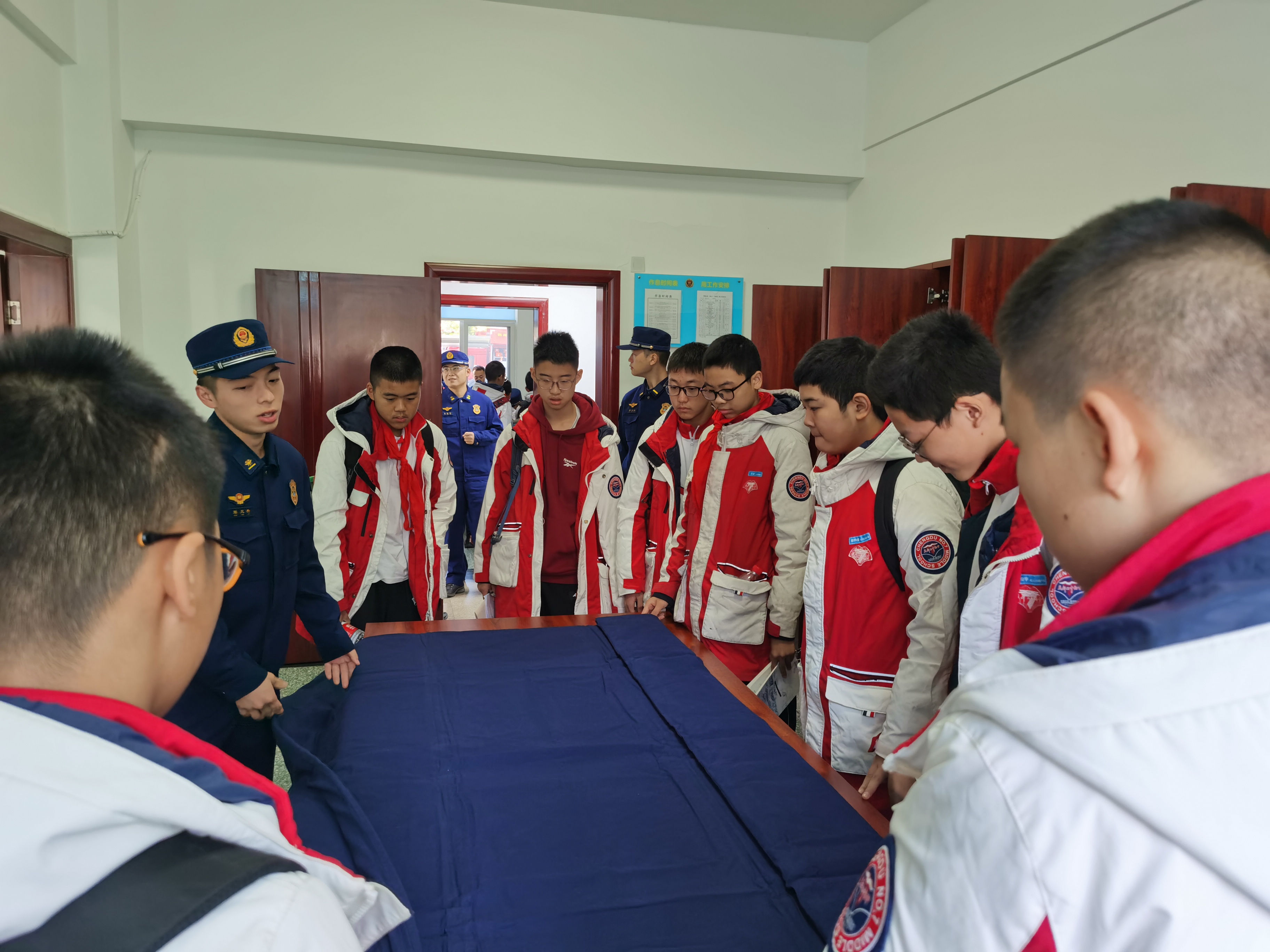 四川发布客户端消息 “难怪网友们都说‘岁月静好是因为你们在负重前行’”,11月是全国消防宣传月,今年的主题是“全民消防、生命至上”,为进一步普及消防安全知识,提高消防安全防范意识,20日,成都市第七中学初中学校的49名同学走进了四川省森林消防总队成都市森林消防大队,开展社会实践活动。同学们通过观看纪录片、体验内务叠放、体验灭火救援装备训练、参观新特装备操作以及和搜救犬亲密互动等活动,深刻体会消防员们“负重前行”的艰辛与伟大。