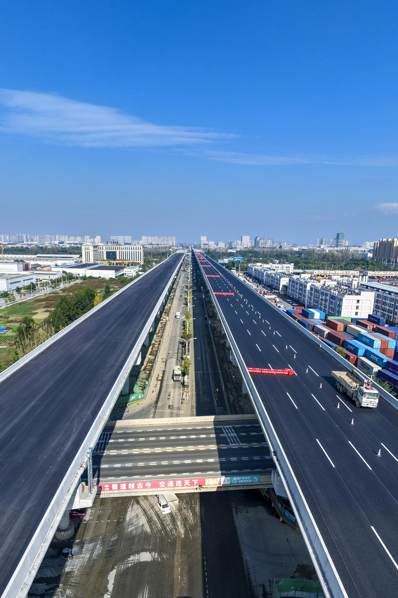 “成绵扩容项目建成通车后,将是成都至绵阳3条高速公路当中技术标准最高、里程最短的高速大动脉,届时,成都至绵阳间可实现1小时通达,通行效率将大幅提升,通行舒适度也会得到改善。”蜀道集团川高成绵苍巴成都分公司代表处处长杨兴涛告诉记者,目前,整个项目建设已接近尾声,仅剩40公里高架桥部分路段正在进行路面沥青铺筑和桥梁的收尾工作,全体建设者正全力以赴,力争年底建成。