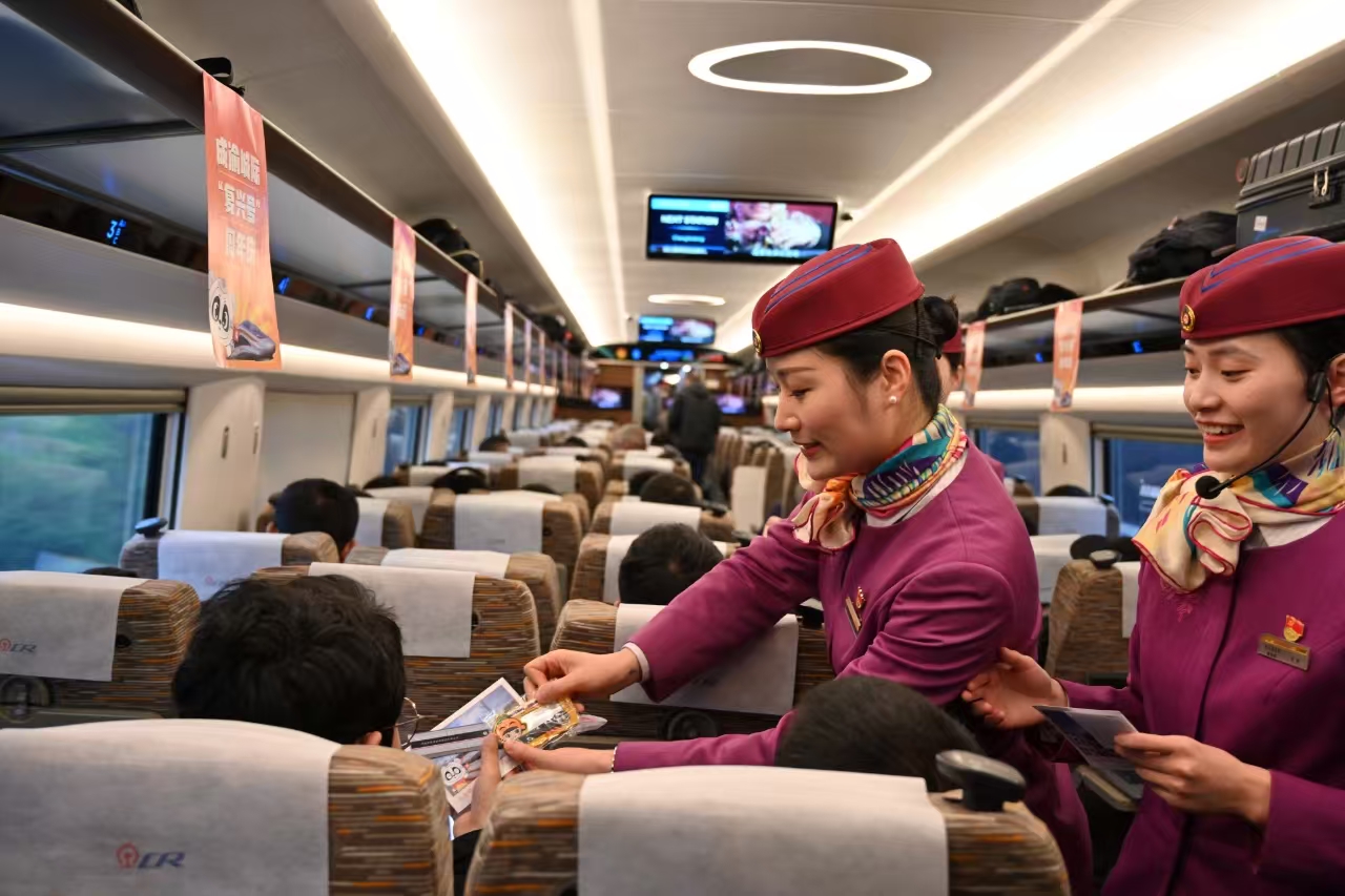 与速度提升相对应的还有服务的提升,2024年,成渝高铁“静音车厢”服务范围,车次扩大到11趟列车,列车上扫码点餐的菜品定期更新,除了正餐、小碗菜简餐,还有老成都担担面、红油水饺等特色小吃,旅客只需在座位上扫描“铁路畅行”码,在座位上即可享用到热腾腾的饭菜。