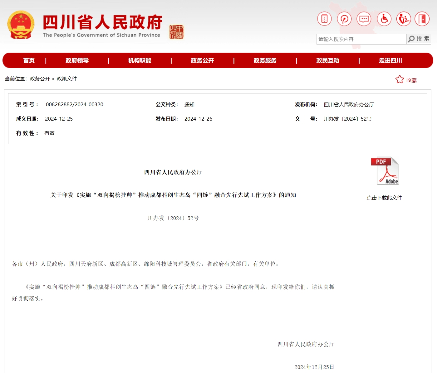 根据《方案》,四川将以西部(成都)科学城、中国(绵阳)科技城为重点,发挥创新资源聚集优势,在成都科创生态岛推动创新链、产业链、资金链、人才链(简称“四链”)融合先行先试,以企业找技术、成果找市场“双向揭榜挂帅”推动科技成果转化和产业化。