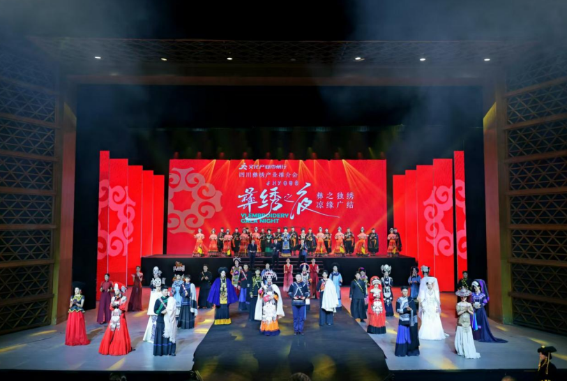 灵动美妙的银针,描摹大自然的模样,穿越于彩线与布帛之间……2024年12月30日晚,在动人心弦的解说声和“索玛花”一样绚烂的彝绣展示中,四川文化产业市州行“彝绣之夜”展演活动在西昌金鹰大剧院璀璨盛启。