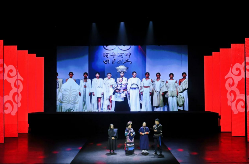 “阿嬷为你绣的嫁衣上,有太阳、月亮,就像阿嬷的心日日夜夜陪伴你。”在第二章《寻忆·阿嫫妮惹》的情景演绎中,岁月在彝族阿嬷的一针一线间穿梭流淌,服饰更多了一份温暖与温情。伴随着极富民族特色的旋律,活动来到了最后篇章《守艺·彝韵宜人》,热情舞蹈的跳跃、民族歌曲的演唱、民族服饰的走秀展示,千年彝绣的热烈醇厚感染了每一位观众。