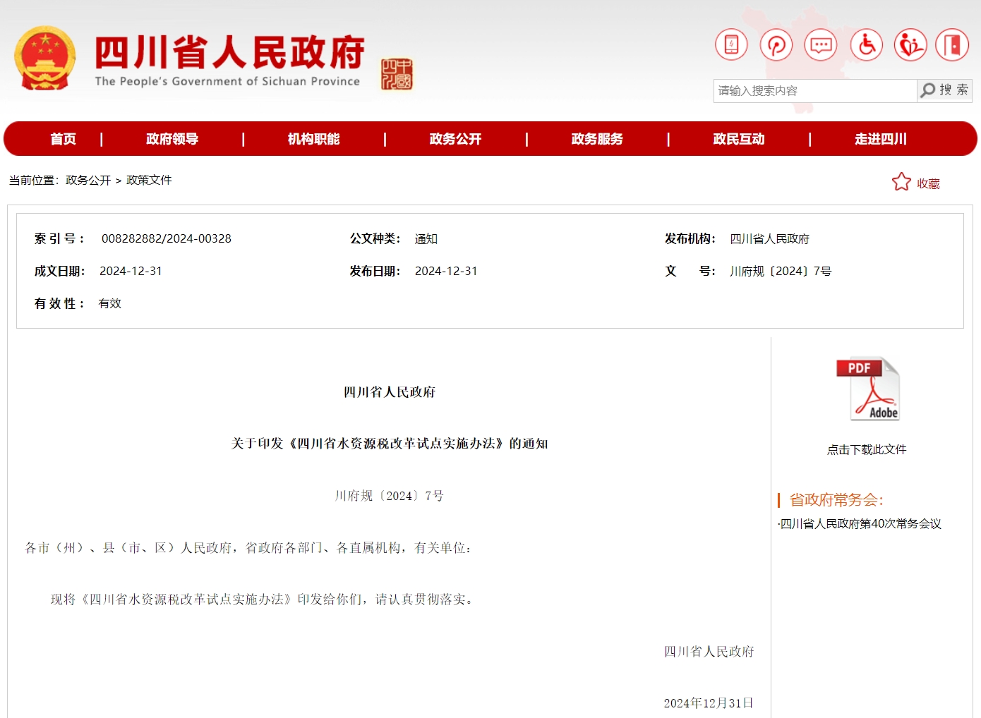 四川发布客户端消息 水资源是重要的自然资源,资源税则是引导资源合理配置的重要手段。近日,省政府印发《四川省水资源税改革试点实施办法》(以下简称《办法》),进一步加强水资源管理和保护,促进水资源节约集约安全利用。