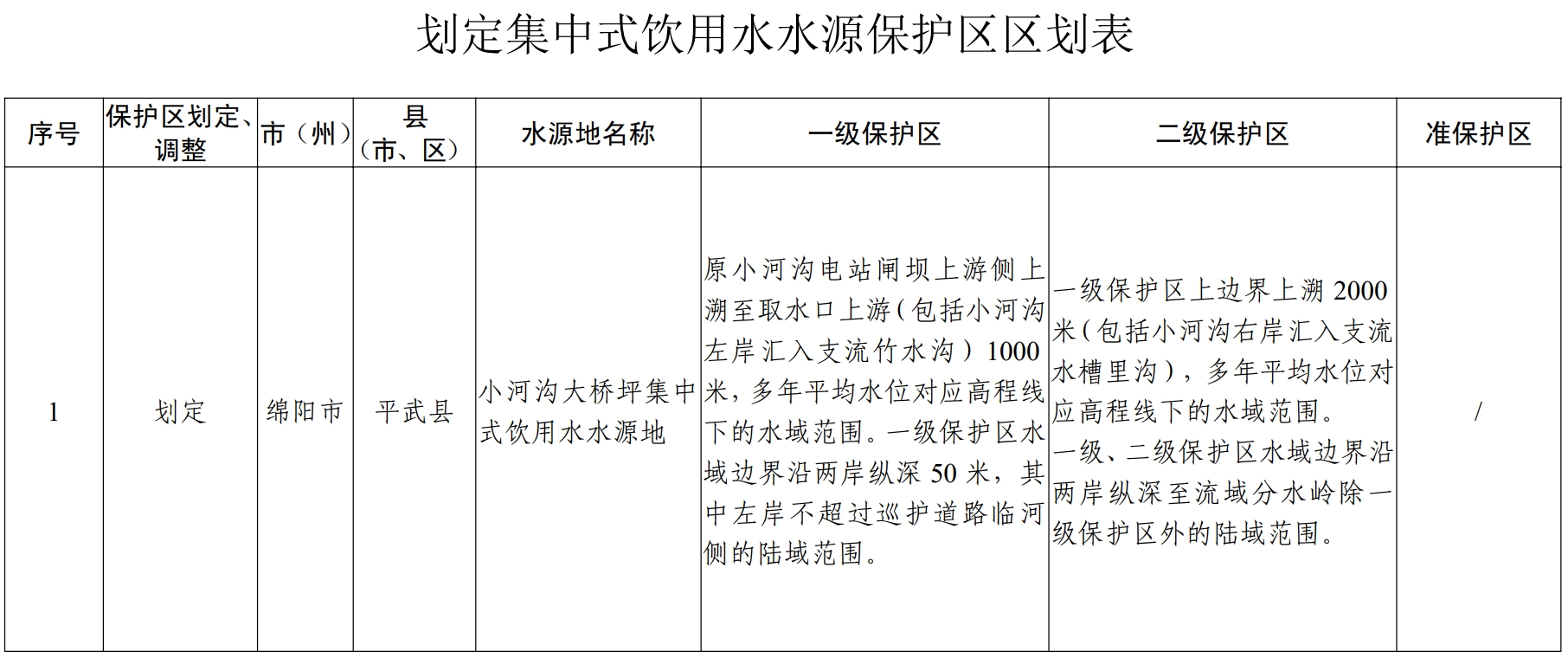 四川发布客户端消息 近日,四川省人民政府发布批复,原则同意划定平武县小河沟大桥坪集中式饮用水水源保护区,撤销遂宁市渠河集中式饮用水水源保护区。