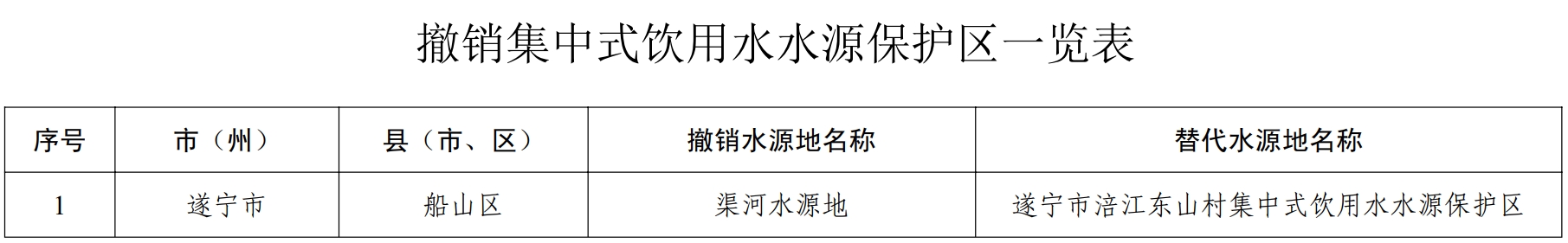 批复要求,本次撤销饮用水水源保护区的遂宁市人民政府要采取有效措施,保证当地饮用水正常供应,确保水量和水质等不受影响。