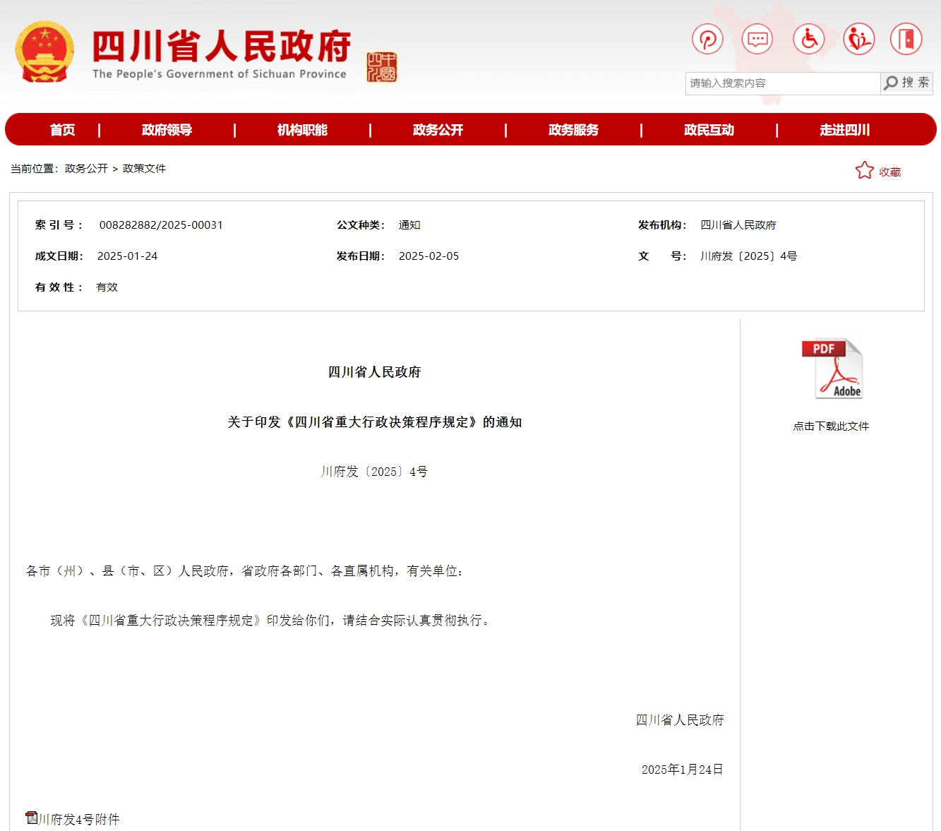 四川发布客户端消息 近日,四川省人民政府印发了新修订的《四川省重大行政决策程序规定》(以下简称《规定》),自3月1日起施行。