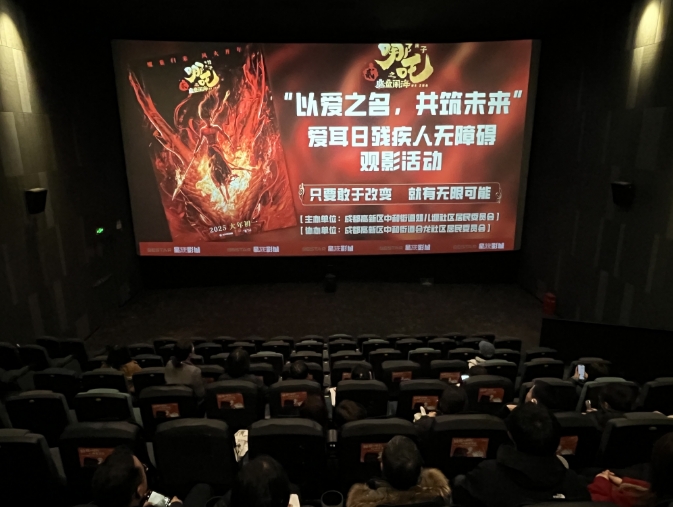 为丰富残疾人精神文化生活,姐儿堰及会龙社区组织辖区内残疾朋友及家属前往影院观看国产动画电影《哪吒之魔童闹海》。活动前后为进一步体现关心关爱,针对行动不便的残障人士,姐儿堰及会龙社区安排专人接送、影院无障碍通道引导,并在活动现场贴心地为残疾人安排好座位,协助行动不便的朋友入场就座。电影播放过程中,大家沉浸在精彩的剧情里,被哪吒的勇敢和坚毅所打动,现场不时传来阵阵笑声和惊叹声,让他们在欢乐中感受到了社会的关爱与温暖。观影结束后,大家围绕剧情展开热烈讨论,残障人士李先生说:“哪吒这部电影非常鼓舞人心,他不甘屈服于命运,凭借坚韧不拔的意志和勇敢的行动,赢得了尊重与认可,通过他的经历,让我感觉到无论身处何种境地,只要心怀信念、勇于拼搏,就能创造奇迹。”