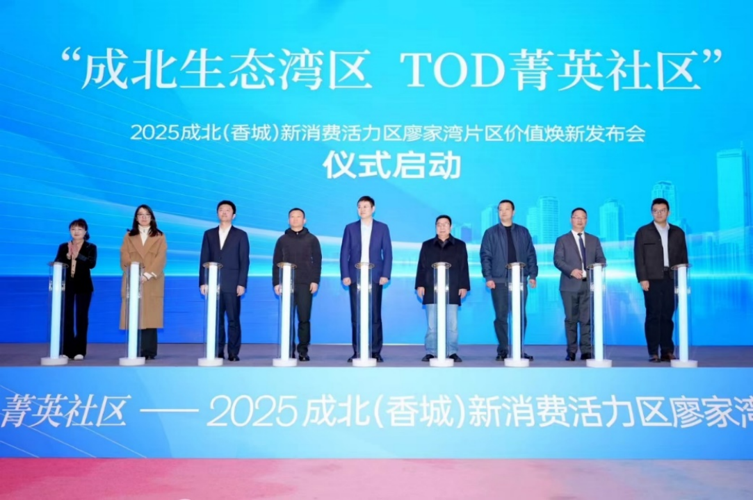日前,“成北生态湾区 TOD菁英社区”暨2025成北(香城)新消费活力区廖家湾片区价值焕新发布会(以下简称“发布会”)举行,通过城市推介、政企交流、政策宣介等形式,共探如何以区域价值焕新,向新挖掘消费潜力。